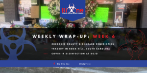 Bio-One Weekly Wrap-Up, Week 6: Cherokee County Biohazard Remediation, Tragedy in Rock Hill, South Carolina, COVID-19 Disinfection at Dojo Bio-One teams across the U.S. answer calls to help their communities and remediate a variety... Krissa GonzalesApril 10, 2021